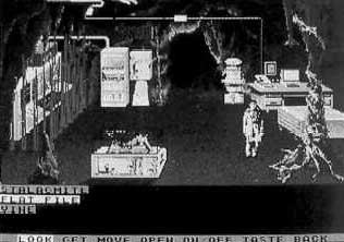 In the apartment, I found another suprise. Unlike the other places I had visited, there was nobody here to question. Instead, I was in a 3-D graphics adventure scene. I moved my animated figure around the room using the cursor keys. Whenever I got near an object, a text description of it appeared at the bottom of the screen, along with a choice of actions, such as Open or Get.