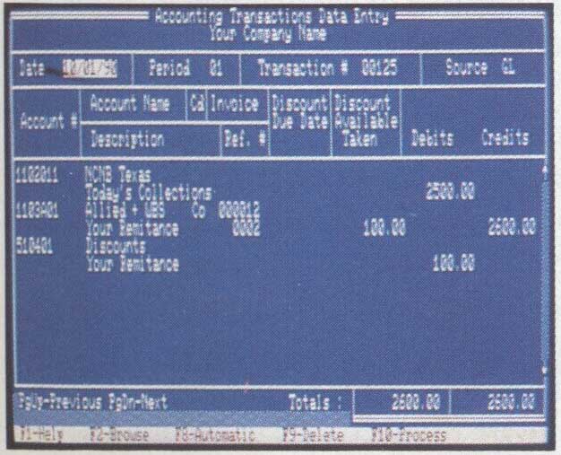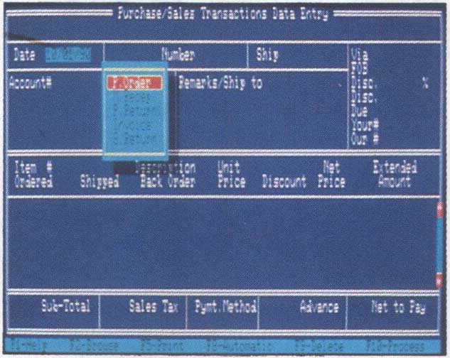 Pacioli 2000 lets you enter different transaction types from a single screen.