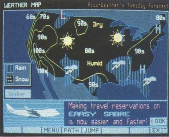 WIRED FOR WEATHER If your weather information needs are limited, WeatherBrief and Accu-Weather Forecaster may be too much of a good thing. Fortunately, your computer can tap other electronic resources to tell you what it's going to be like outside. CompuServe, the telecommunications giant, offers extensive weather information and news among its hundreds of services. Nine types of National Weather Service-style reports appear in text format, ready for you to read while online (or capture as a text file for later reading). Although reports are limited and sometimes several hours old, they duplicate some of those you can retrieve with WeatherBrief. CompuServe also has three maps you can view or download; even in color, though, they're crude when compared to those on WeatherBank or Accu-Weather. Prodigy, another major player in telecommunications, also has a weather section, which was recently improved. It now has three national weather maps, one showing weather for the current day, another showing fronts and iso-bars for the current day, and the third showing weather for the next day. Seven regional weather maps have also been added. City weather reports have been expanded to include temperature in Fahrenheit and Centigrade, winds, air quality, a three-day forecast, and the times of sunrise and sunset. The number of cities has been expanded to 235 domestic and 100 frequent international travel destinations. In the major metro-politan areas, there are reports for the cities in the region. And the outdoor reports have been expanded to include reports on beach/boating, skiing, and foliage reports. Neither CompuServe nor Prodigy offers up the weather info that Weather-Brief or Accu-Weather Forecaster makes available. But keep in mind that getting weather info via CompuServe or Prodigy is less expensive than it is with WeatherBank or Accu-Weather. |