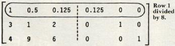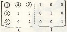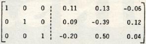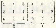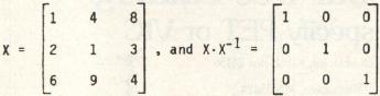 Finally, as an example of the routine's speed, inverting a 10 by 10 identity matrix takes about 45 to 50 seconds. This is not very fast. However, some of the algorithm's time is spent checking columns for the highest key element and for switching rows, when necessary, in the next-to-final-form inverted matrix. Some programs omit this check. But when they do, a danger arises that X will not be inverted when it really can be. And further, the elements of the inverted matrix may be of lessened precision. The preference here is for effectiveness rather than speed. But Gauss, always the perfectionist whose motto was "Few, but ripe," might challenge us: "Can't we have both?"