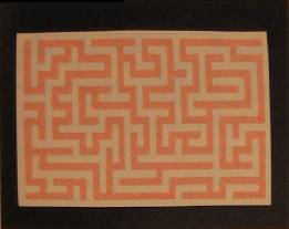 The creation of the maze begins by placing a special marker in a suitable starting square. The program here always begins at the square just inside the upper left cell of the previously drawn field. (Note that with our coordinate scheme this would be cell 1,1). Any cell with odd numbered coordinates would work, however, as long as it is internal to the field.