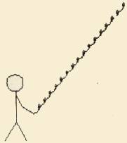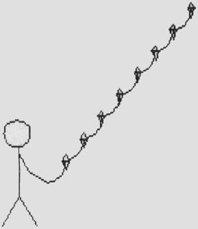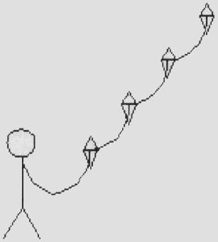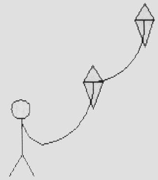 This is fine for garden variety kite fliers, but suppose you wanted to make the string straighter. One way to accomplish this would be to add a second kite in the middle of the string. Because each kite would carry less weight, they would each be smaller.