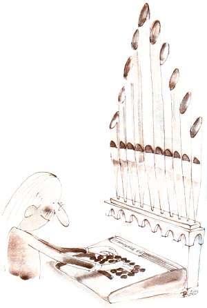 Under the indicator line are the two musical keyboards. They indicate where on the computer's keyboard the musical keyboards can be found. The lower keyboard is a continuation of the upper keyboard; thus the lower set of keys plays the higher notes.