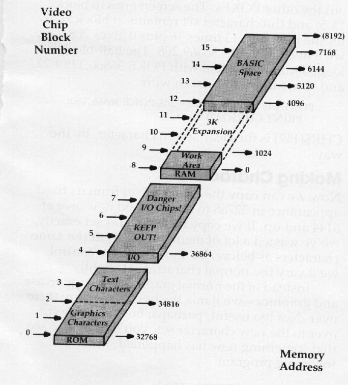 We know that the VIC-20 video chip gets two things from memory: "screen memory" and "the character set." But it sees the computer's memory in an unusual way: