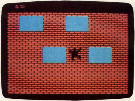 The game ends when you are hit by a ailing object or are pushed from a window by the villain. Thus, you are allowed to climb over windows in this version, but you're taking a chance. If the villain emerges while you are in a window, it's curtains for you. (You'll be relieved to discover that the Crazy Climber carries a parachute.)