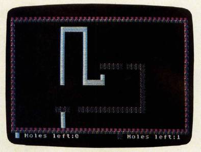 In "Barrier Battle," you must maneuver your barrier in an effort to contain jour opponent. The fire button on the joystick (or the space bar for the versions using keyboard) allow. you to leave spaces (holes) within your barrier Clever use of this, feature lets you corner your opponent and still leave yourself a means of escape You can create a maximum of five holes in each game.