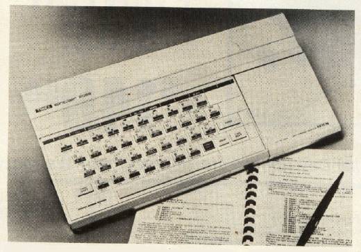 The keyboard is full size and has 42 keys arranged in the familiar QWERTY layout. Timex describes the keys as being "full-travel," but they feel more like those on a calculator. They click into position when pressed and snap back when released. Each time a key is pressed, a faint sound can be heard from the internal speaker. This enables you to type without having to look up at the screen to verify that each keystroke was entered. All keys repeat when held down. And small raised dots on the F and J keys make it easier for touch-typists to find the home keys.