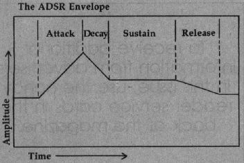 - Ax, where x is the attack rate of the note. This is the time it takes the sound to reach its highest volume. The value of x must be between 0 and 15; the larger the number, the more time it takes. (See the figure for a further description of attack, decay, sustain, and release.)