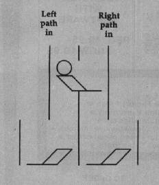These statements, found in the Taketurn: routine, are performed on each new turn to make the player's arrows flip back and forth. If you're not familiar with XOR mode, this code looks confusing, since it PUTs both arrows on the screen no matter whose turn it is. But we began the game by PUTting the left arrow in place when the screen was drawn. Thus, when the first turn is taken, the left arrow erases itself, and the right one appears. On the second turn the right arrow erases itself, and the left one appears, and so on. This shortcut eliminates the need for a separate routine to keep track of the arrows' display status.