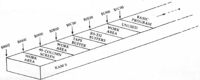 If you need a good deal of space and want to use the overlay method, there's a trick that will liberate an extra 9K block of memory up to $4000. You can easily switch BASIC so that it starts at address $4000, leaving free space in the former BASIC program area from
