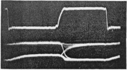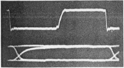 Photographs of the address and data bus signals were taken while running the memory test program and are shown in figure 5. About the only visible loading effect on the address bus is a long tail on the zero-to-one transition during phase 1 of the clock. The data bus appears to be even cleaner with just a shade over 100NS required for the data to stabilize after the leading edge of phase 2. The microprocessor was driving the data bus for the data bus for this photo (scope synced to read/write line on the bus). The zero logic levels, which one would think show the effect of gross overloading most, were still in the 0.3 volt range although the one levels were down to only 3 volts from a normal lightly loaded value of nearly 4 volts. Note the almost complete absence of noise. These "overloaded" signals actually look far better than most S-100 bus signals!
