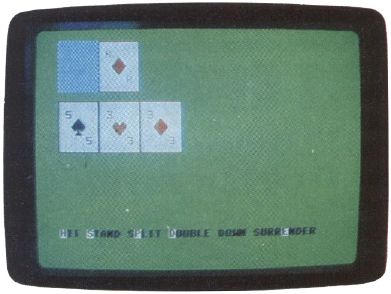 Win your ticket home or lose your shirt in this accurate simulation of the most popular Las Vegas card game. Originally written for the Commodore 64, we've included versions for the Atari eight-bit computers, Apple II series, IBM PC/PCjr and compatibles, and the Amiga. The PC version requires BASICA or GW-BASIC or Cartridge BASIC for the PCjr. The Apple II version works on any Apple H-series computer under either DOS 3.3 or ProDOS. The Amiga version requires 512K of RAM.