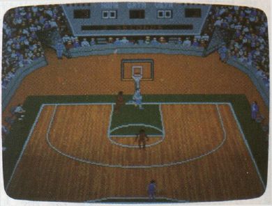 When the game is over, the screen turns into the sports page of the Gamestar Gazette, and you can read all about it. A full statistical summary is displayed: field goals made, shooting percentage, rebounds, steals, blocked shots, assists, and fouls for each player. The leading scorer gets his name emblazoned at the top of the page, and (of course) attendance is announced.
