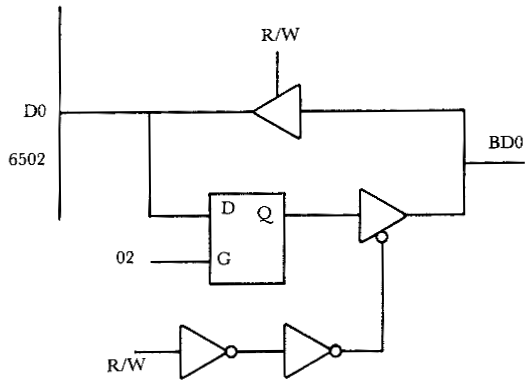 Meeting the read requirements of the 6502 is easy for almost any I/O device in any family. The problem occurs when the 6502 tries to write to the relatively sluggish devices of other families. Some of these chips have relatively long setup and hold time requirements for a write operation. The setup times are not often a problem, however. In order to be on the safe side, the chip manufacturer often quotes a rather conservative minimum hold time spec (like 100ns) while quoting a typical spec of 30 or even 0 ns. To insure reliable performance, you must meet the minimum spec. The 6502 will guarantee only a 30 ns write hold time. What do you do when you want to write to a Western Digital 1771 floppy controller chip with a longer hold time requirement? There are a number of ways to overcome this problem. First, however, we should consider an additional complication.