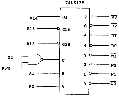 Now if you are building a small dedicated controller, you certainly may not need eight input ports or eight output ports. There's no reason why you cannot use a single 74LS138 to give you gates and strobes for four of each.