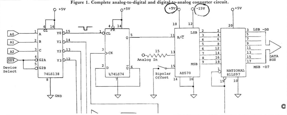 And here's an important correction for Marvin L. DeJong's compute II, Issue 2 schematic. (Page 6, Some A/D And D/A Conversion Techniques. Note that pins 10 and 12 (circled) are now (correctly) reversed.