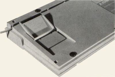 There are a couple of things I noticed about the new keyboard that may cause problems in use, however. The first is that when the keyboard feet are deployed to raise the keyboard's level, the back of the keyboard partially obstructs the floppy disk slot. The second is that since the mouse connector is located on the keyboard unit itself, if you want to put the keyboard in your lap, the mouse tends to want to come along. Removing the mouse cord from the "keeper" slot in the bottom of the keyboard can help avoid this problem somewhat, and the "joystick extender" cords sold by Radio Shack will probably help, as well.