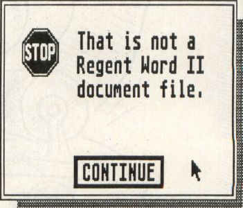 Don't worry if you click on the wrong document as the program will first check to make certain the document is a Regent Word II file as shown in Figure 9.
