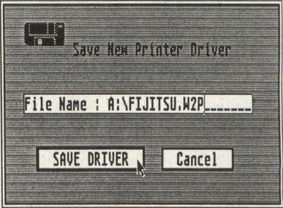 Once you have finished entering values, press the return key. The dialog box shown in Figure 4 will appear, asking for the file name of the new printer driver. Type the filename, and press the return key. After a few moments the GEM Desktop will appear, and the new printer driver will have been successfully created and may be used in the Double Column Utility.