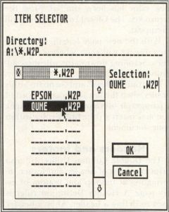 The file selector window will appear as illustrated in Figure 5. Printer drivers have a file extension of .W2P, so the file selector window will show only those file types. Move the mouse pointer over the printer driver name and then double-click the left mouse button. Once the printer driver has been loaded, the printer drop-down menu will indicate which driver was last loaded as you can see in Figure 6.