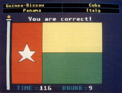 Yes, this is where the ST fits in. I reasoned that the computer could be programmed to draw the flags and then show them in a random order. And, hey, how about having the computer quiz me on the flags, giving me a limited amount of time to identify them? Also, it would be nice to have a two-player option enabling the player to race against each other and the clock.
