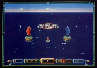 Warlock consists of 20 levels, all filled with more enemies than you can shake a stick at, as well as many useful items: potions for restoring your strength, magic books for giving you more power, treasure chests to increase your score and "Protecto Scarbs" that add strength to your armor. Your goal is to collect the eight magical objects that are also scattered about the screen (and frequently guarded by powerful nasties), and then recapture the "Kama," a precious jewel that was stolen by a thief so treacherous he is referred to only by the moniker "HE."