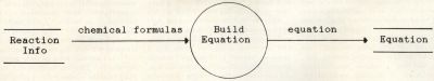As an example of this last entity, look at Figure 1. This very simple fragment of a DFD may appear at first glance to contain five objects: data stores called "Reaction Info" and "Equation"; data flows named "Chemical Formulas" and "Equation"; and a process named "Build Equation." But two additional "objects" can be extracted from this diagram. One is the relationship between the three objects Reaction Info, Chemical Formulas and Build Equation; the second is the relationship between the objects Build Equation, Equation (data flow) and Equation (data store).