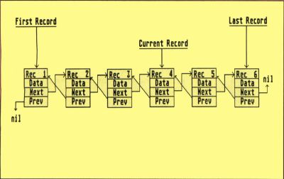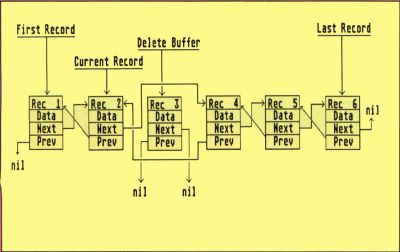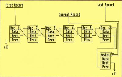 The basic building blocks of constructing a linked list are procedures to add a record, delete a record and insert a record (see REC_MOD.PAS and Figures 2 through 4).