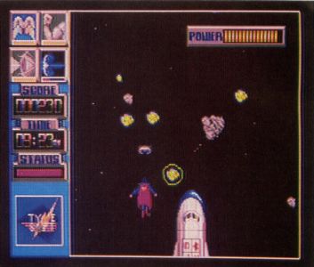 What makes this game so addictive is the graphics and ease of control. The graphics are bright, cute and big, with a cartoon feeling that adds some humor to what is, after all, a shoot 'em up. (Check out the information screens that precede play for specifications on the enemy.) As for game control, one hand stays on the mouse to move the ship up and down, while the left button accelerates the ship and the right changes its direction. The other hand meanwhile works the Shift and Control key for laser fire and smart bombs. Once you get cooking—zipping through orange and yellow explosions, while the sound effects bleep and blap—you'll feel like you're watching a psychedelic movie. It's fun!