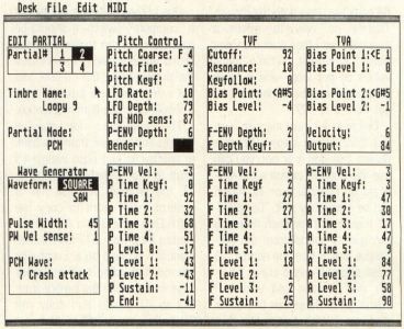 Changes are immediately sent to the MT-32, so you can hear what effect the modification has made. You'll have to retrigger the note, however; it's not a real-time process. Now for the flip side. There are some odd features and outright omissions.