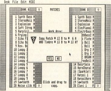 The procedure for copying timbres and patches from one bank to another is just plain weird. If I want to copy a patch from B13 to A1, the program will ask me to confirm that I want to copy the Patch Data from B13 to A1, and the Timbre Data from B13 to A13. The manual is no help here. Eventually I found that going to the Timbre page and copying the timbre from B13 to A1 would also copy the Patch Data from B13 to A1.