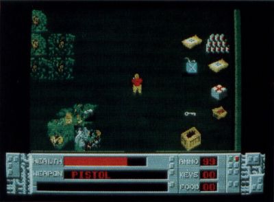 There is also an economic side to the game. While you may sometimes find extra equipment, usually you will have to buy the equipment with food, which is found lying about in the mutant-infested buildings. You'll have many tough decisions to make, such as when your ATV needs both repairs and fuel, but your food supply is such that you can't afford both. Also, the advanced weapons cost big… um…calories, so you'll have a tough time scraping up enough leftovers (sorry) to buy them.
