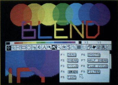 The many powerful functions provided by Da Vinci are too numerous to list here. But, as well as all the more common graphics functions, artists are also provided with coordinate and grid lock, 3-D distort, bend, rotate, flip, smear, cycle, blend, tint and filter.