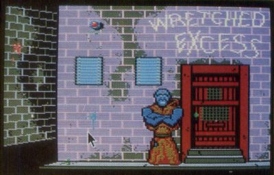 Sierra is most famous for its King's Quest series, featuring a novel adventure-game design in which you use a joystick to move your on-screen persona, which you see in a third-person perspective. Manhunter is in some ways more traditional in that most of the game is viewed through the eyes of your alter ego. There are some third-person scenes, primarily of yourself getting slain in some exotic ways, but these are usually decorative in nature.