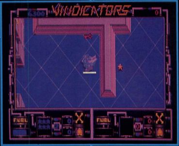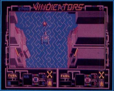Domark is best known for James Bond games, so it's a nice change of pace to see Vindicator (developed along with lengen games). Based on the Atari game co-op. you are required to drive a Super Tank through the merciless Starbase controlled by the evil Tangent Empire and blow the place up.