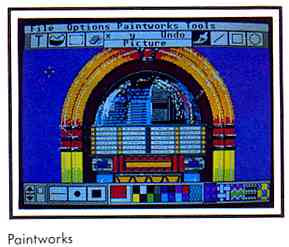 Paintworks's disk options enable Page, Screen and Clipboard files to be saved or retrieved in compressed or uncompressed formats, the latter being NEOchrome-compatible. Also of interest is Activision's Music Studio, which you can tie into Paintworks and create musical slideshows. (A review of The Music Studio appears elsewhere in this issue.)