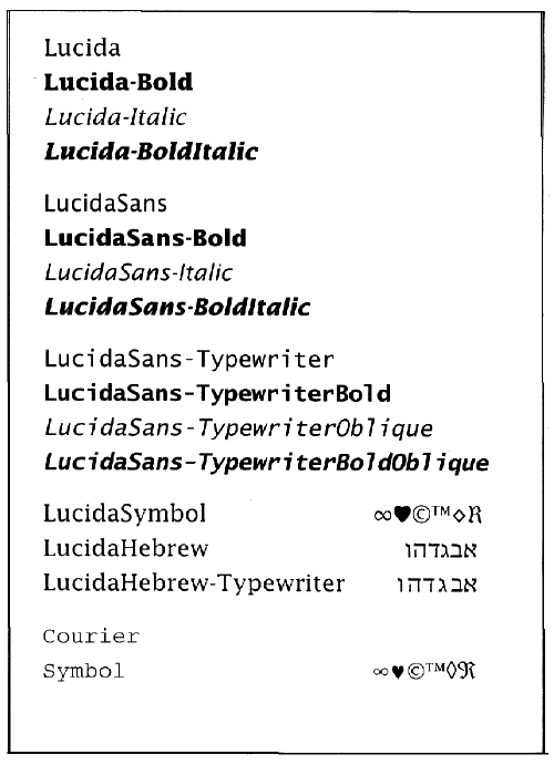 Other fonts that are available (or should be by the time you read this) include: Optima, Park Avenue, ITC Garamond, ITC Souvenir, ITC Lubalin Graph, ITC Korinna, Univers, Hobo, Brosh Script, Stencil, Helvetica Light and Black, Futura, ITC New Baskerville, Lucida Calligraphy, Eurostile, Cooper Black and Crescendo, an original music font that is compatible with Sonata.