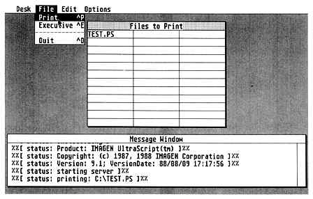 Once you've loaded all the files you want to print into the queue, you just select Print from the File menu and you're off and printing. And the printing is fast-no more going out for a cup of coffee while waiting for a document to print, as with the average PostScript printer.