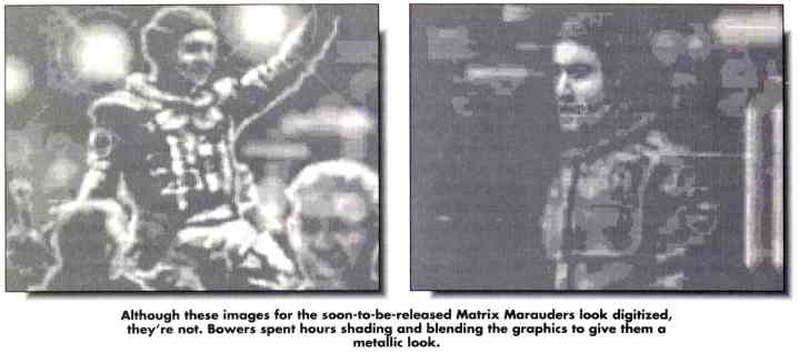 You'd be forgiven for thinking Bowers produced most of his work with help from a video digitizer. It's his technique. "I go for impression rather than detail," he says. "Shades and subtlety are what give my graphics their digitized look." The results speak for themselves. Unless you saw Bowers in action at the keyboard, you'd be convinced he hid a video digitizer and camera in his pocket.