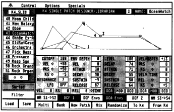 Users may edit single- and multi-patches, and the effects, output and drum sections of the K4. The program has quick, clear displays, click-and-drag graphic-envelope editing and provides for easy organization of your patches within libraries and banks where you may use sort, filter, copy, swap and delete functions. And the powerful sequencer is always available from any point in the program.