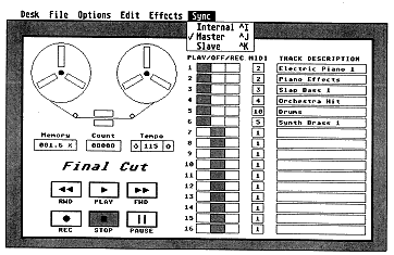 Following on the success of their TX81Z patch editor Musicode has released two more patch editors: the DX21/27/100 and K1 Voice Development Systems. Those looking for a solid first sequencer should look at Final Cut from Legend Software, currently shipping version 2.3. As many sequencers pass the one-meg memory requirement, it's reassuring to find good ones that still run on the 520ST.