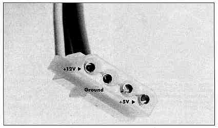 If that looks okay, check for + 5 volts DC and +12 volts DC on ALL the power leads coming out of the supply. This is easy. The ACSI-SCSI board requires + 5 VDC only (measure + 5 to the ground lead running along with it). The hard drive itself and the Adaptec controller require +5 and + 12 VDC. Looking at the power lead, the voltages are arranged as shown in Figure 1. Usually the +5 wire is red and the + 12 orange, but don't count on it; it seems to depend on what spool of wire they were using the day they built the supply.