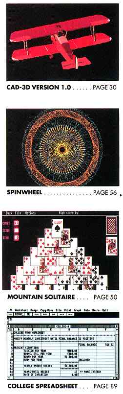 CAD-3Dversion 1.0 headlines our annual graphics issue. This is the original version of Tom Hudson's sophisitcated modeler for the ST, found in CAD3D.ARC. It features multiple light sources, solid or wire frame option and four perspectives of the object. See your creations zoom, spin and travel with CAD-3D Animator, the companion to CAD-3D version 1.0. The file ANIM_3D.ARC contains the program and a high and low resolution example.