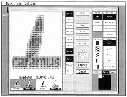 NeoDesk includes an excellent icon editor (see Figure 2). You can call the icon editor at any time from the Desktop. Much improved over previous versions, it provides all the tools necessary to create new icons and background patterns. (Icons and patterns can even be created using two colors.)