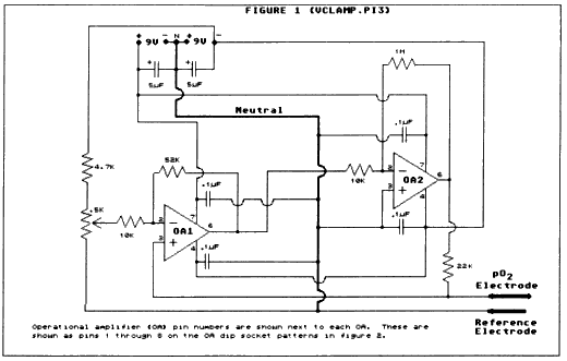 the battery power-supply lines leading to pins i and 7 of the operational