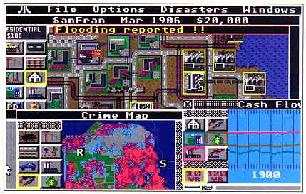 That's the basic play of SimCity, but there are other choices at startup. Included are eight scenarios of famous cities in various states of disaster - the 1906 San Francisco earthquake, Detroit's crime wave of '72, Tokyo's monster attack in '57, even a nuclear meltdown in Boston in 2010. You have limited time and money to correct or repair the problems. Win the key to the city or ride out of town on a rail.