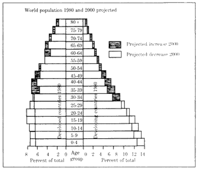A very useful technique, known as the cohort-survival method, is often used to make population projections in situations where migration is a limited factor. In this approach, the population is divided into categories by sex and age. Individuals belonging to the same statistical category are known as cohorts. Age-specific birth and mortality rates are applied, and a pyramid is developed that adds new births at the bottom as other cohorts are aged upward. This enables planners to anticipate age-specific needs as regards housing, health care, schooling, and so on (see Figure 3-1).