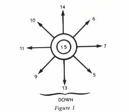 The last of the relatively simple elements we included in Odd Man Out was a joystick routine designed for children's needs. The joystick is a switch that can sense eight distinct directions, but young children often lack the motor skills required to accurately position the joystick. As a result, when it checks for an up or down response, for example, our program checks for and allows any of the three joystick positions that can be considered to be pointing down, rather than allowing only one correct choice (see Figure 1). This minimizes a young child's anxiety by widening the window for acceptable resppnses.
