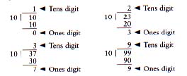 Which method do you prefer? Which method is easter to extend to splitting a three-digit number (100 to 999)? Try both methods in programs to split a three-digit number into its hundreds, tens, and ones digits.