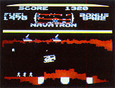 Some of the features that enhance the game's action are the wrap-around scrolling, the teleporting of your Copter after being zapped in the Hyper-Chamber, the Navatron, the landing pads and the space bar. The wrap-around scrolling enhances the game's playability while the teleporting adds an element of risk and uncertainty because you may materialize in a chamber with choppers or SBMs. The Navatron provides a long range navigational view of the surrounding space. The landing pads provide a feature which permits you to land your Copter at particular locations within the caves, and be returned to that location in the event your Copter is destroyed. You can take a brief rest by pressing the space bar which suspends the action. Pressing it again resumes the action.